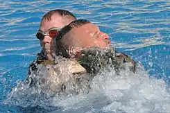 Salvamento acuático es el conjunto de conocimientos, normas y destrezas empleados para la efectiva vigilancia, protección y atención de las personas que acuden a las diferentes áreas acuáticas de deporte y recreación de uso público, y que pueden caer en una situación de peligro que amenace su vida. También se puede utilizar para los casos de inundaciones. En Canadá , cualquier organismo de tamaño significativo de agua, ya sea en pleno verano o en invierno, se considera agua fría. A pesar de que varios organismos responden a este tipo de rescates, incluyendo la policía , bomberos y servicios médicos de emergencia , sus funciones, responsabilidades y nivel de formación de un rescate tan técnica son bastante diferentes. Como tal, una de las mejores prácticas será identificar y adoptar estándares de la industria que incluyen formación y equipos específicos. Esto apoya la opinión de que cualquier persona que entra en el agua con el propósito de rescate debe estar capacitado para el nivel de un técnico de rescate. [1]