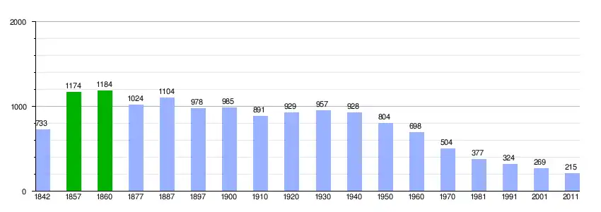 Gráfica de evolución demográfica de Salvatierra de Esca [7] entre 1842 y 2011 |
