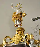 La representación similar que se hace con Jesucristo niño se denomina Niño Jesús de Praga o "Niño de la Bola".