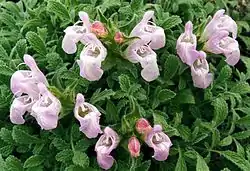 Ha crecido en el sector hortofrutícola desde 1950, por lo general en los jardines de roca, debido a su porte enano. Con hojas divididas y tallos que crecen en racimos, en lugar de ser espaciados uniformemente. Las flores son rosadas pálidas lilas, de alrededor de 4 cm de largo, que crecen en inflorescencias muy cortas que son apenas más largas que las hojas.[1]
