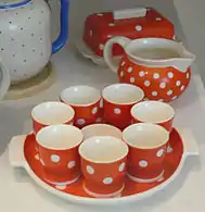 - Bodegón de Luis Meléndez, Museo del Prado (Madrid). En segundo plano, tras la orza mielera una salvilla de peltre sobre la que hay una vasija de loza mexicana.