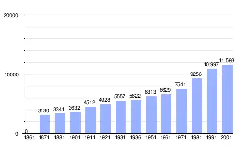 Gráfica de evolución demográfica de Salzano entre 1861 y 2001 |