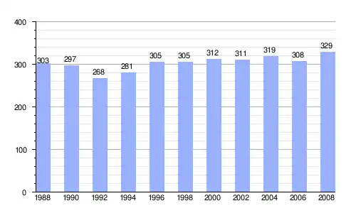 Partido político | 2015[3] | 2011[4] | 2007[5] | 2003[6] | 1999[7] | 1995[8] | 1991[9] | |||||||
