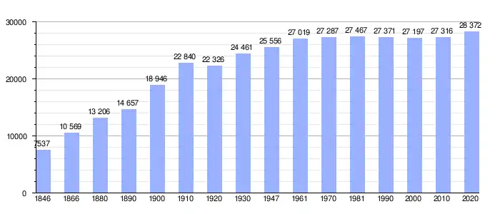 Todos los datos históricos relativos al actual municipio, el siguiente gráfico refleja su evolución demográfica, incluyendo municipios después de efectuada la fusión el 1 de enero de 1977.