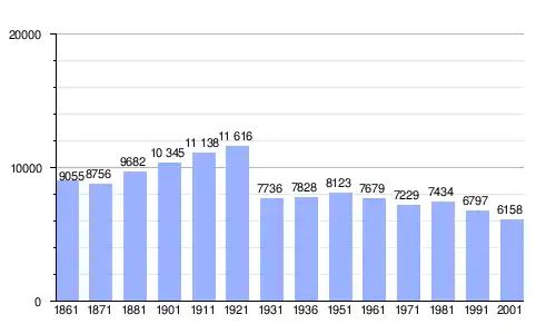 Gráfica de evolución demográfica de Sambuca di Sicilia entre 1861 y 2001 |