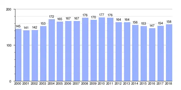 Gráfica de evolución demográfica de San Paio entre 2000 y 2018 |