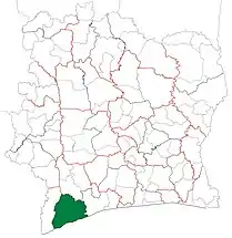 Se encuentra ubicado al suroeste del país, junto al golfo de Guinea y la frontera con Liberia.
