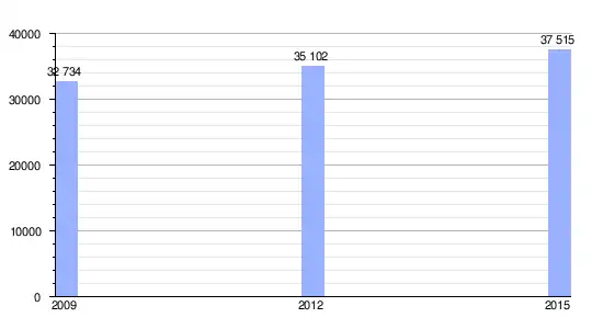 Gráfica de evolución demográfica de San-Yago entre 2009 y 2015 |
