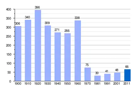Población de derecho (1900-1991) o población residente (2001) según los censos de población del INE.[3] Población según el padrón municipal de 2011 del INE. |