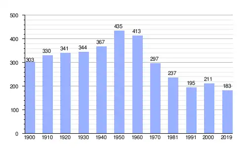 Gráfica de evolución demográfica de San Agustín del Pozo entre 1900 y 2019 |