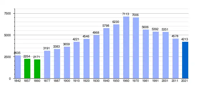 Gráfica de evolución demográfica de San Andrés y Sauces entre 1842 y 2021 |