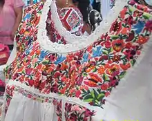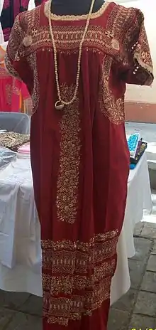Se produce ropa típica a base de manta adornada con bordados de hilos de seda. De las cuales destacan el hazme, sí puedes; el deshilado, el cambalache y sus pensamientos.