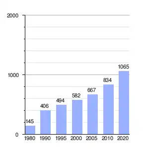 Gráfica de evolución demográfica de San Antonio entre 1980 y 2020 |