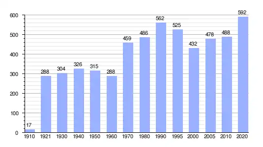 Gráfica de evolución demográfica de San Antonio Corrales entre 1910 y 2020 |