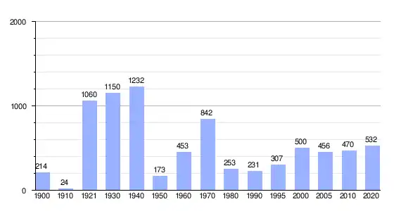 Gráfica de evolución demográfica de San Antonio Sabanillas entre 1900 y 2020 |