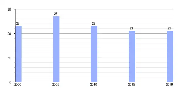 Gráfica de evolución demográfica de Chamoso entre 2000 y 2019 |