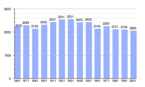 Gráfica de evolución demográfica de San Bassano entre 1861 y 2001 |
