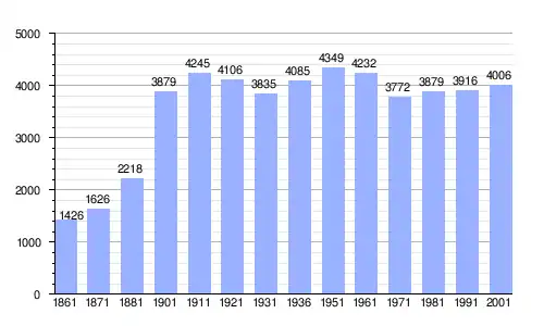 Gráfica de evolución demográfica de San Benedetto dei Marsi entre 1861 y 2001 |