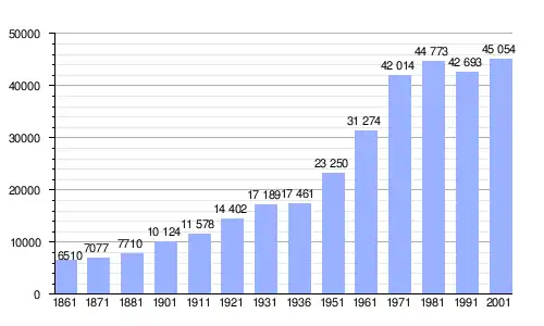 Gráfica de evolución demográfica de San Benedetto del Tronto entre 1861 y 2001 |