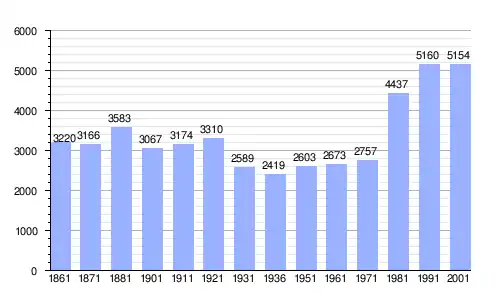 Gráfica de evolución demográfica de San Benigno Canavese entre 1861 y 2001 |