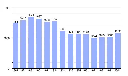 Gráfica de evolución demográfica de San Bernardino Verbano entre 1861 y 2001 |