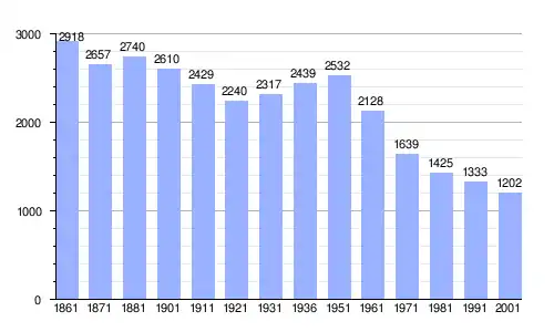 Gráfica de evolución demográfica de San Buono entre 1861 y 2001 |