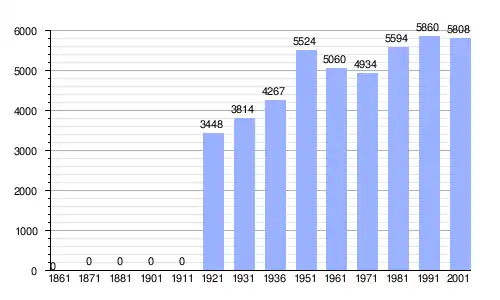 Gráfica de evolución demográfica de San Canzian d'Isonzo entre 1861 y 2001 |