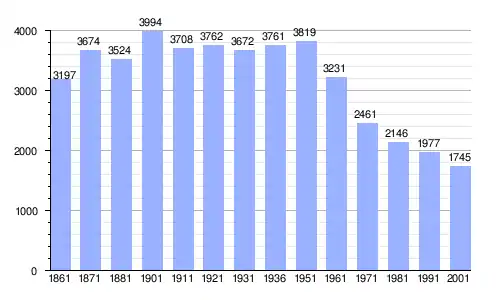 Gráfica de evolución demográfica de San Casciano dei Bagni entre 1861 y 2001 |