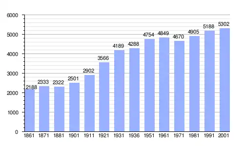 Gráfica de evolución demográfica de San Cesario sul Panaro entre 1861 y 2001 |