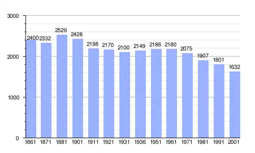 Gráfica de evolución demográfica de San Chirico Nuovo entre 1861 y 2001 |