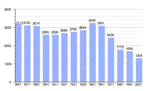 Gráfica de evolución demográfica de San Chirico Raparo entre 1861 y 2001 |