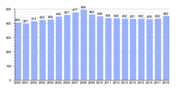 Gráfica de evolución demográfica de San Cidre entre 2000 y 2018 |