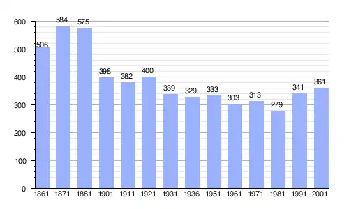 Gráfica de evolución demográfica de San Colombano Belmonte entre 1861 y 2001 |