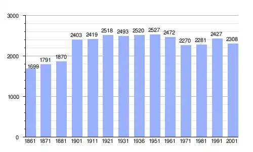 Gráfica de evolución demográfica de San Costantino Calabro entre 1861 y 2001 |