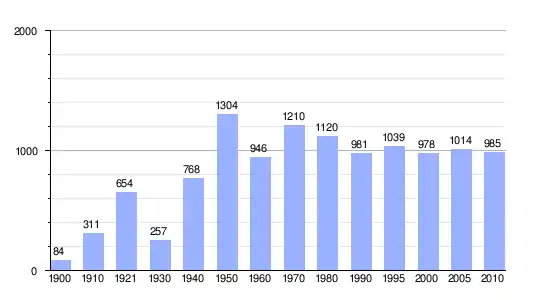Gráfica de evolución demográfica de San Cristóbal entre 1900 y 2010 |