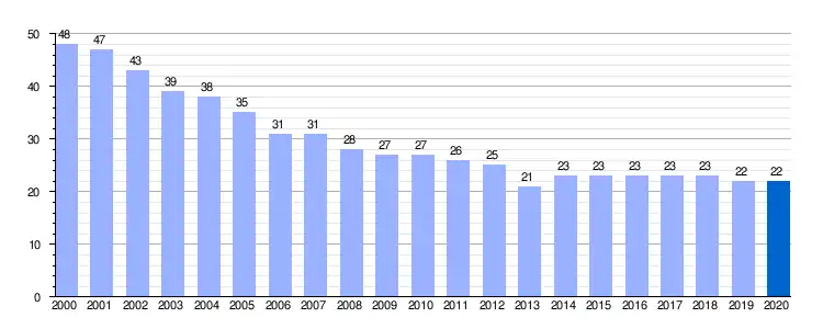 284 | 259 | 228 | 220 | 192 | 202 | 158 | 112 | 72 | 46 |