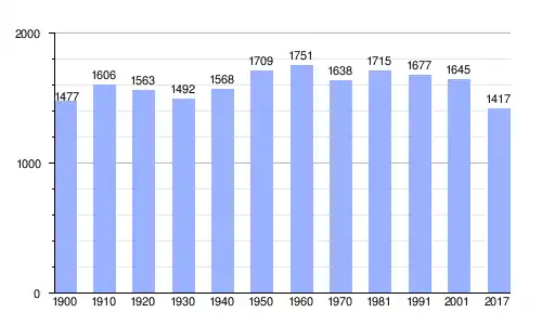Gráfica de evolución demográfica de San Cristóbal de Entreviñas entre 1900 y 2017 |