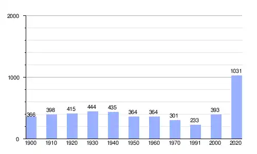 Gráfica de evolución demográfica de San Cristóbal de la Cuesta entre 1900 y 2020 |