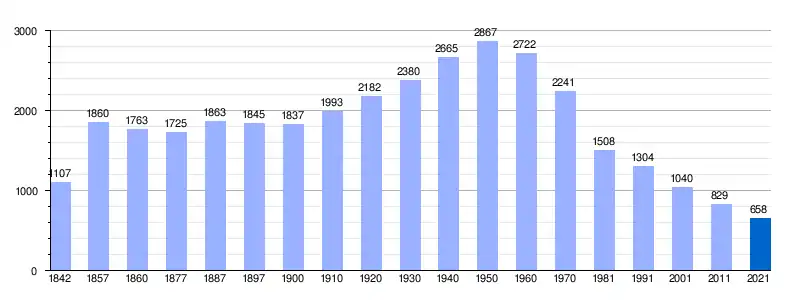 Población de derecho (1842-1991, excepto 1857 y 1860 que es población de hecho) o población residente (2001-2011) según los Censos de Población desde 1842. Población según el padrón municipal de 2021 del INE. |