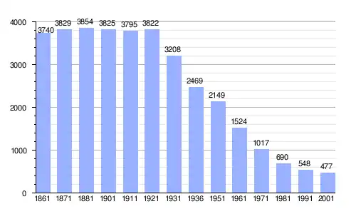 Gráfica de evolución demográfica de San Damiano Macra entre 1861 y 2001 |