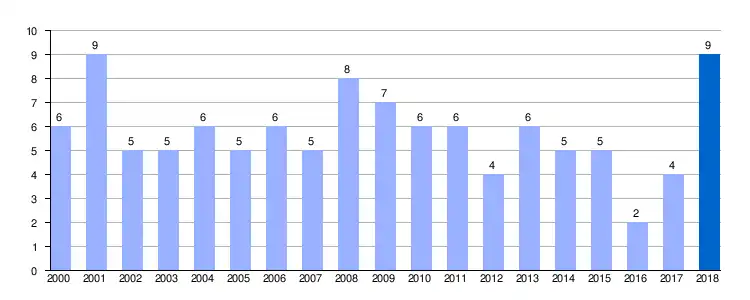 Gráfica de evolución demográfica de San Esteban de Treviño entre 2000 y 2018 |