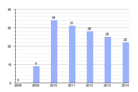 Gráfica de evolución de la deuda viva del ayuntamiento entre 2008 y 2014 |