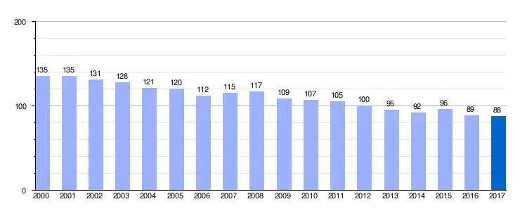 Gráfica de evolución demográfica de San Félix de la Vega entre 2000 y 2017 |