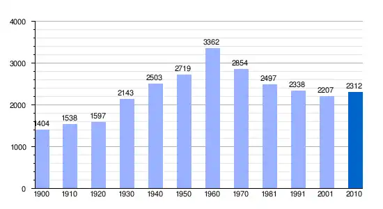 A 1 de enero de 2014 la población del municipio ascendía a 2388 habitantes, 1153 hombres y 1159 mujeres.[1]