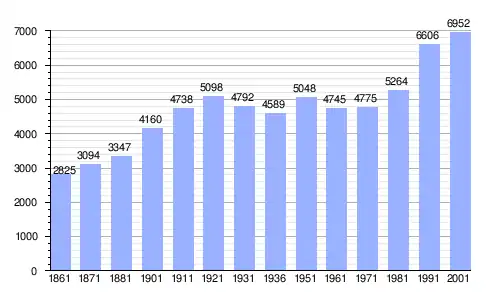 Gráfica de evolución demográfica de San Filippo del Mela entre 1861 y 2001 |