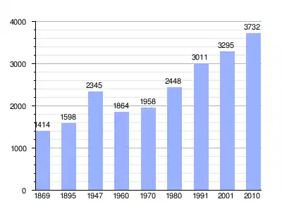 Gráfica de evolución demográfica de San Francisco del Monte de Oro[3] entre 1869 y 2010 |