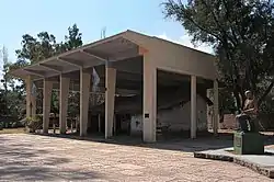 En uno de los ángulos de la plaza de la Banda Sur, se conserva el humilde ranchito -protegido por una cubierta- donde Domingo Faustino Sarmiento vivió a la edad de 15 años en 1826-1827. Es una sencilla construcción de adobe y barro cocido, con techo de paja sobre vigas de madera de álamo y presenta las características de las viviendas del interior, con el alero apoyado en rústicos troncos que cubren el modesto corredor. En las paredes del templete, que se halla en el centro mismo de la plaza, hay numerosas placas recordatorias. En 1936 fue afectado por el Terremoto de San luis.[2]