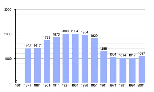Gráfica de evolución demográfica de San Germano dei Berici entre 1861 y 2001 |