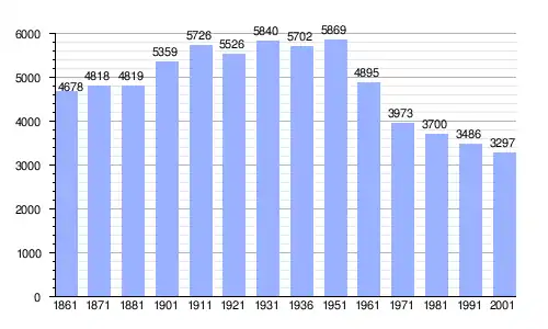 Gráfica de evolución demográfica de San Giorgio La Molara entre 1861 y 2001 |