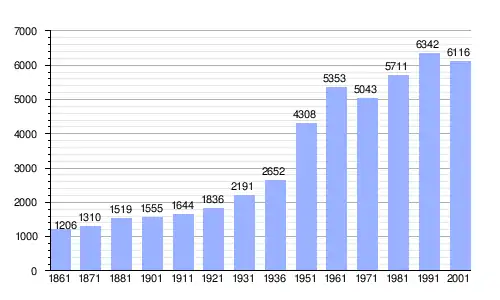 Gráfica de evolución demográfica de San Giovanni Suergiu entre 1861 y 2001 |